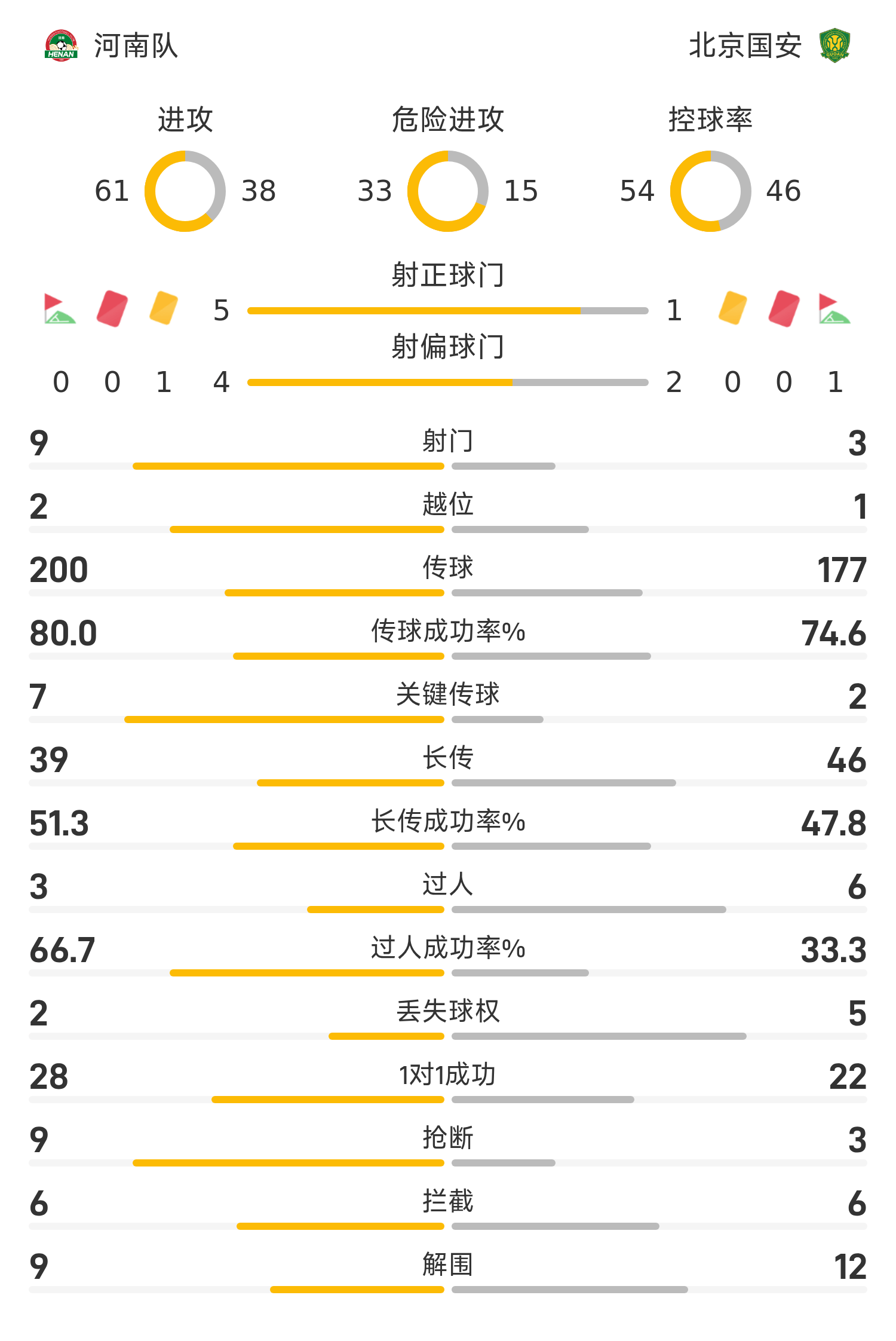 河南队首发阵容:18-王国明、36-迈达纳、23-马亚、4-叶力江、6-王上源、40-纳萨里奥、22-黄锐烽、13-阿卜杜肉苏力、11-阿奇姆彭、7-钟义浩、9-卡多索