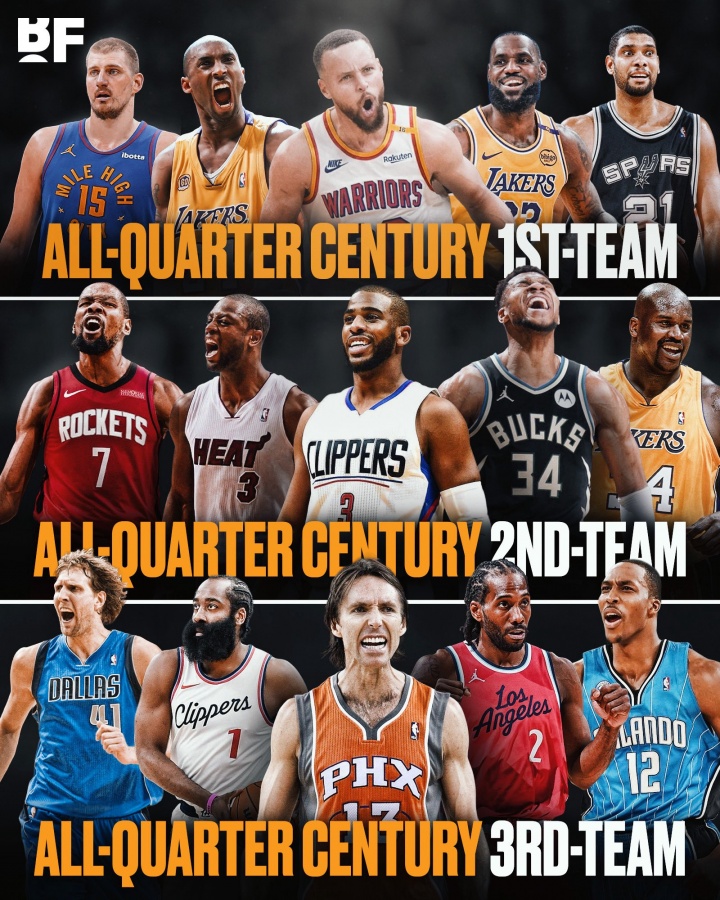 美媒CBS体育(哥伦比亚广播公司体育部)排21世纪前1/4世纪(25年)的三个最佳阵容
