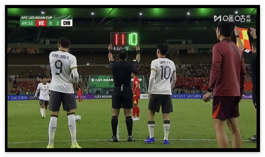 越南拼到精疲力尽,0比2落后,转头看到更犀利的两位前锋正准备上场了。