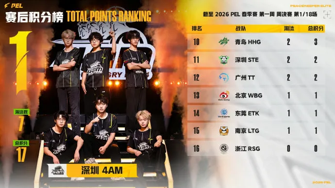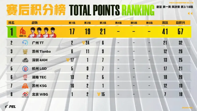 决胜时刻,信号圈缩在材料厂附近,圈内剩余成都AG战队、苏州KSG战队和深圳4AM战队,此时场上4v4v4。三队发生混战,一波人员互换后,AG战队先被淘汰出局,随后剩余两队展开对战,最终4AM战队凭借默契配合将KSG战队逐个击破拿下比赛,恭喜深圳4AM战队获得本场比赛胜利。